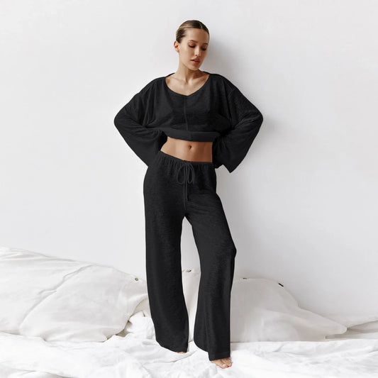 Breathable Loungewear Set Roundneck Top Ankle Pants