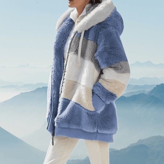 Norvia | Oversized Cozy Fleece Hooded Jacket With Color Block Tunic