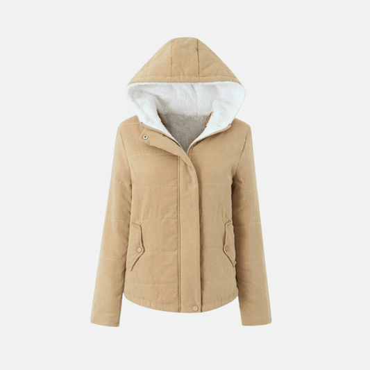 Womens Quilted Hooded Jacket With Plush Fleece Lining Snap Front