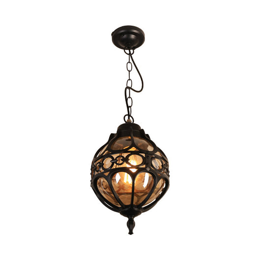 Amber Glass Round Hanging Light Farmhouse Ceiling Pendant
