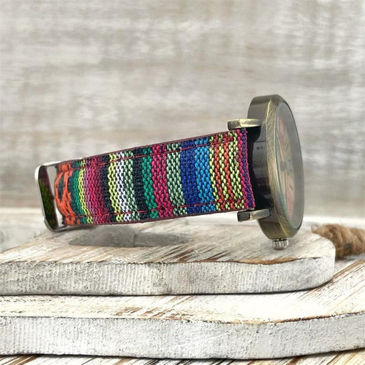 Rainbow Pattern Watch With Woven Band And Colorful Dial