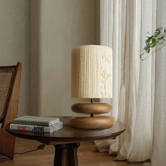 Walnut Wood Bedside Lamp With Fabric Shade For Bedroom