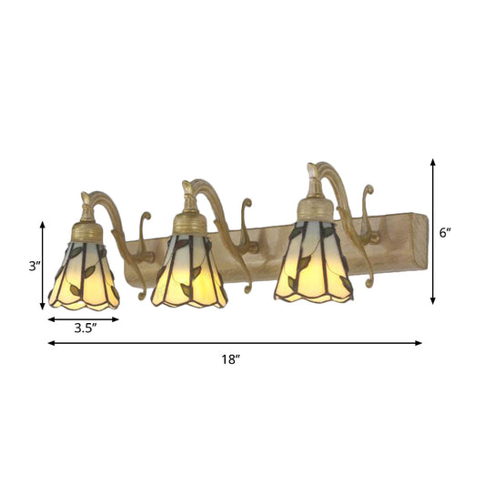 Three Head Leaf Vanity Light Stained Glass Copper Backplate