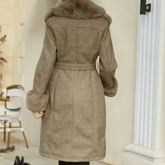 Norvia | Sleeve length lapel mid-length fleece trench coat for women