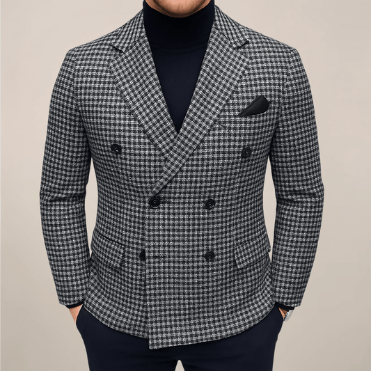 Tailored Double Breasted Checked Blazer For Smart Casual Attire