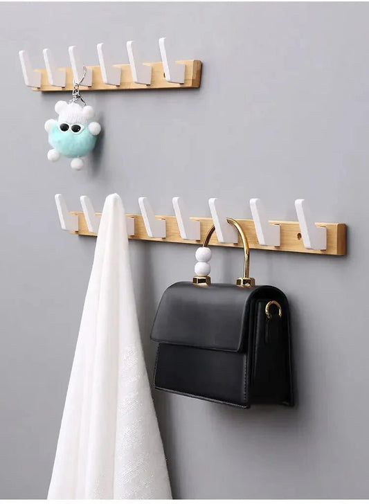 Creative Wall Hook Rack Solid Wood No Drilling Entry Organizer