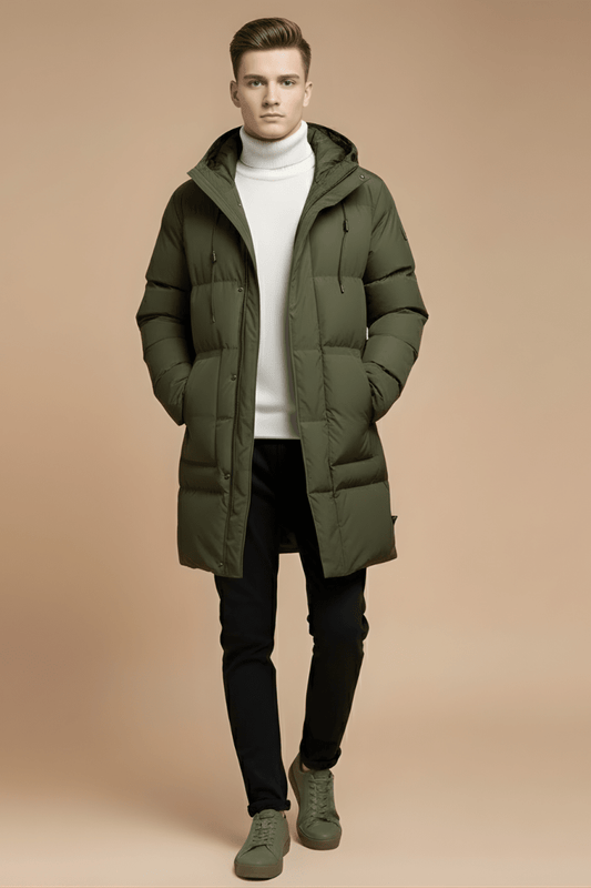Men's Insulated Parka Jacket Longline Hooded Winter Coat Quilted